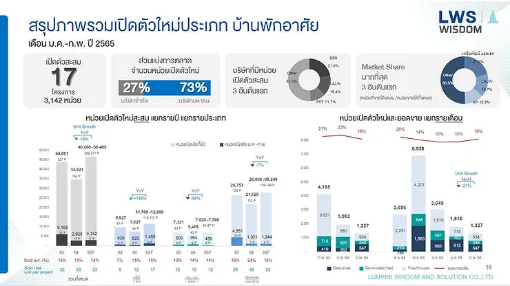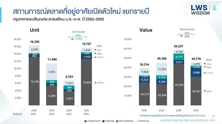 ตลาดอสังหาฯ เดือนม.ค.-ก.พ. 2565 เปิดตัวใหม่เพิ่มขึ้น 133%(YoY) แต่มูลค่าลดลง 23%(YoY)