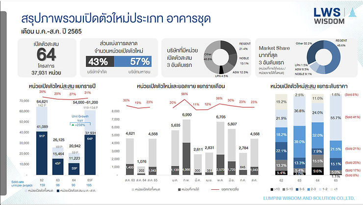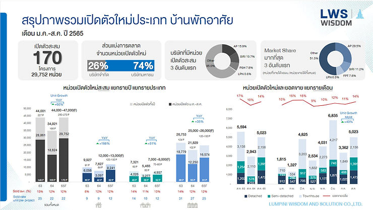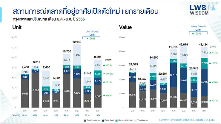 “ลุมพินี วิสดอม” ระบุตลาดอสังหาริมทรัพย์ ที่อยู่อาศัยเปิดตัวใหม่สะสม พื้นที่กรุงเทพฯ-ปริมณฑล 8 เดือนแรกของปี 2565 (ม.ค.-ส.ค. 2565) มีจำนวนหน่วยเพิ่มขึ้น 127% (YoY) มูลค่าเพิ่มขึ้น 70% (YoY)